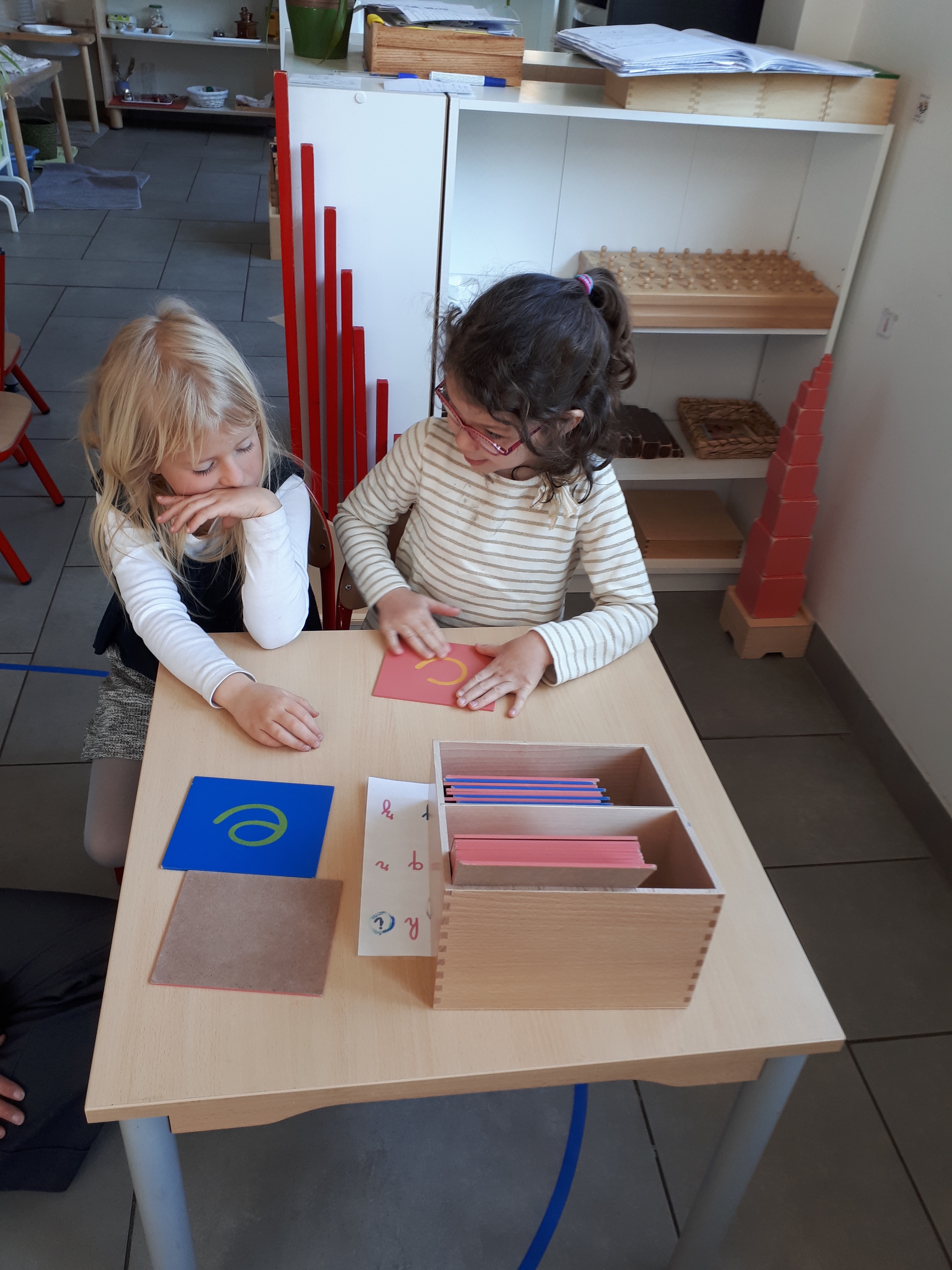 L’enfant peut choisir de travailler seul, avec un camarade ou en petit groupe : cela encourage l’autonomie, la coopération, et la recherche personnelle de solutions.